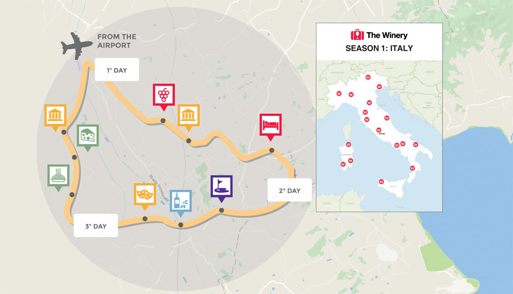 Gli episodi di The Winery hanno una durata di 26 minuti; descrivono una città o un paese, una cantina produttore di vino, una struttura ricettiva, eventi culturali e tradizioni del territorio, sport e relax.